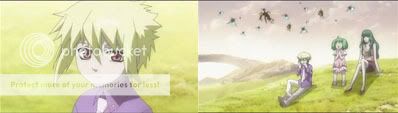 把所有歌都通通都播了就對了,每首只有幾秒的時間也要插進去~唉,歌每一首都不錯聽,可是連起來卻怪怪的...都變不好聽了啦!然後慢歌節奏都好快,你真的很趕!其實只播OP2就夠了啦!一直播一直換歌,加上機器人打鬥的聲音,有夠吵的...用耳機的我看完後耳朵好痛喔...囧|||| 不過比較有驚喜是女王版的私の彼はパイロト(只有一句= =)跟雙歌姬的トライアングラー,歌詞還被改為「キミは誰とキスをする わたしそれともあたし」 呢~