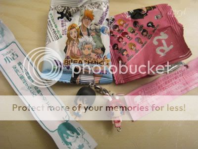 光是他自己一個根本認不出他是BLEACH的角色阿!(抱頭)人家一護、RUKIA、戀次跟冬獅郞都有點特色,可是大哥穿上平民泳裝後卻真平凡阿,果然貴族還是不適合穿平民裝嗎?大哥穿著制服(?)時卻是很帥氣的說(泣)能自我安慰的是還好我沒抽到亂菊跟那隻黑貓(那是夜一嗎......?),要是拿到亂菊時我會收好然後再也不會拿出來吧...一個女生掛著一個大胸比基尼女郎會很奇怪吧...送給男性朋友更會害他被人當作是變態...囧